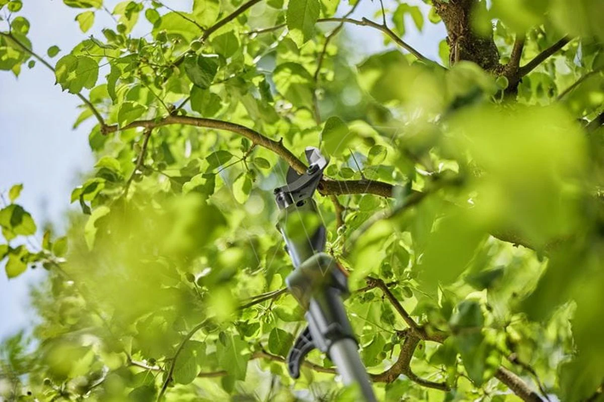 Gebruik de kantelende en smalle schaarkop om afzonderlijke takken te knippen, met een hoek van 60 graden. De gekantelde kop geeft je bovendien een goed zicht op wat je aan het snoeien bent. Als takken blijven hangen in de boom kan je ze gemakkelijk omlaag trekken, met de haak bovenop het handvat. De ledindicator in de ergonomische handgreep toont je de laadstatus van de accu. Een volle accu met 2,0 Ah maakt tot wel 400 sneden mogelijk. De GARDENA Accu-telescooptakkenschaar HighCut 250/18V P4A wordt geleverd als gebruiksklare set met een snellader en krachtige 18V POWER FOR ALL-accu.
