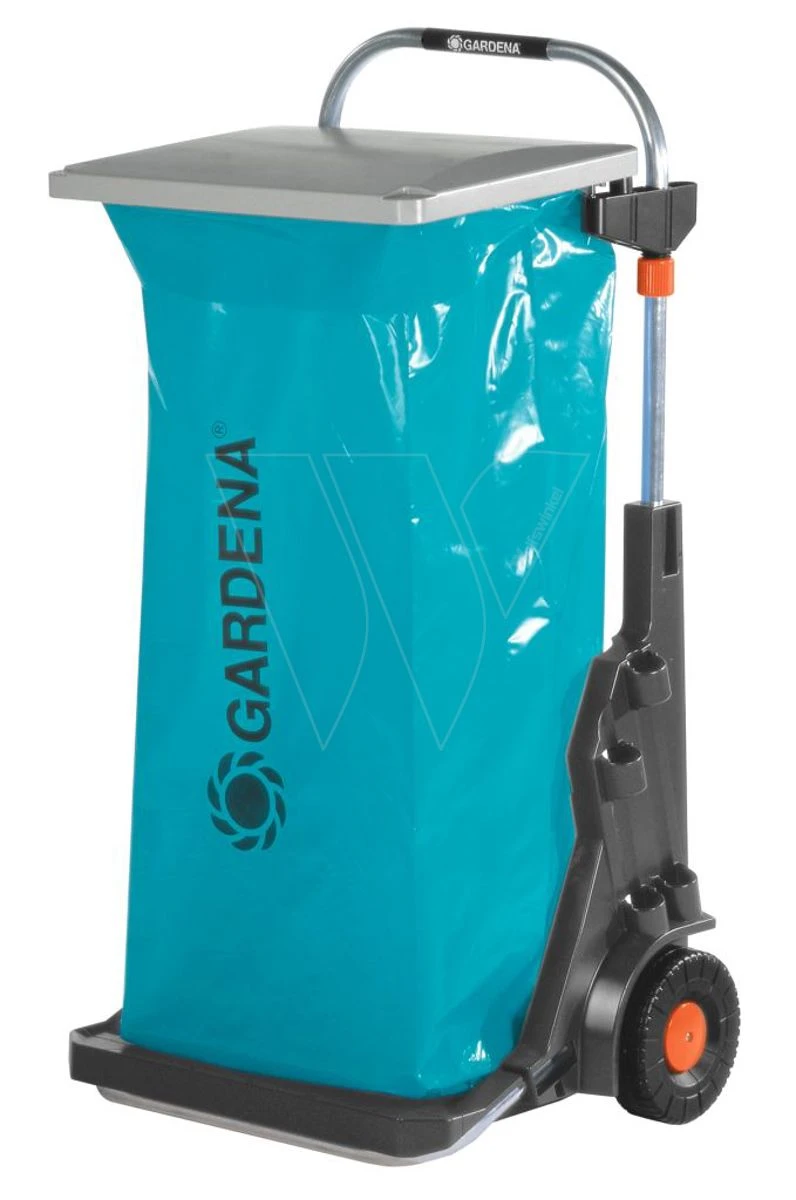 Hij is voorzien van grote, stevige wielen met een speciaal loopvlak en een prima grip die het gazon ontzien, alsmede van een solide, metalen frame met een laadvermogen van 70 kg. Het praktische deksel heeft een dubbele functie: het beschermt tegen geurtjes en vocht en het kan ook worden gebruikt als veegblik. Het roestvrije materiaal garandeert een lange levensduur. De in hoogte verstelbare zakhouder vergemakkelijkt het vullen van de afvalzak, die met clips kan worden gesloten.